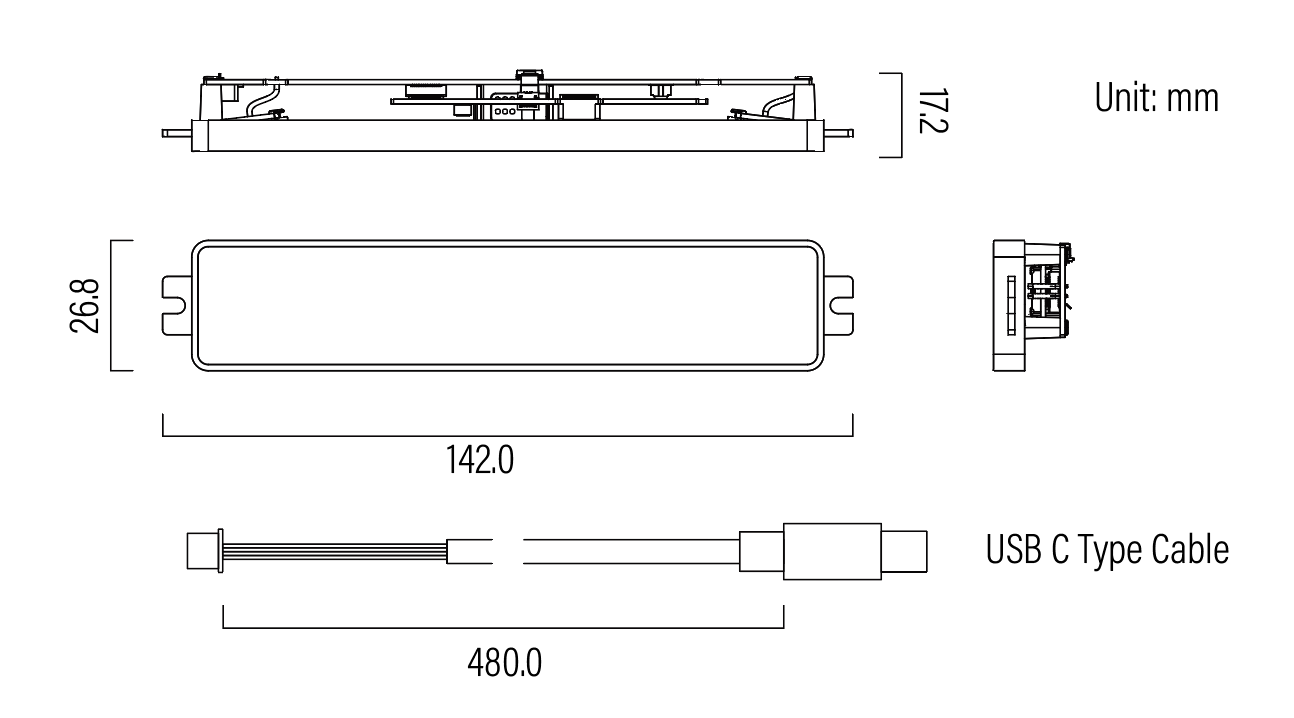 | Dimensions (W x H x D) | 142mm x 26.8mm x 16.6mm (5.59” x 1.06” x 0.65”) |