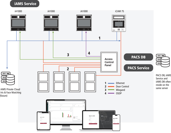 The iAMS Management Service is the central hub for controlling the IrisAccess® database and managing communications with iA1000 and prior generation iCAM7000S series readers. Designed for efficiency and scalability, a single iAMS instance supports the entire network eliminating complexity and reducing overhead.