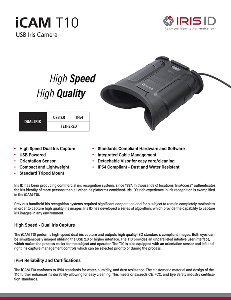 Download Iris ID’s latest printing materials such as data sheets and brochures.